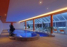 Panoramahallenbades,mit Gegenstromanlage und integrierten Whirlpool,